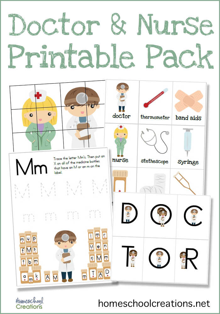 We’ll be working on our Doctor and Nurse Preschool Pack soon, so I’ll have lots more to go along with the printables, but I just couldn’t wait to share it! We’ll be using the book Going to the Doctor by Anne Civardi along with several other great books.